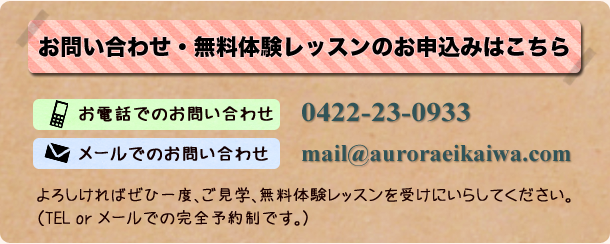 お問い合わせは auroraenglish39@gmail.comまでメールしてください。